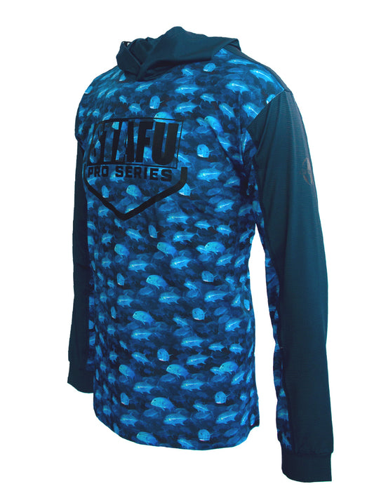 Outrigger Kapüşonlu UV Korumalı Performans T-Shirt - Blue GT Siyah