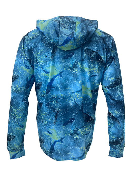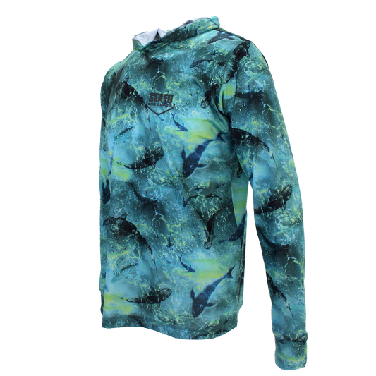 Zero Kapüşonlu Uzun Kollu UV Korumalı Performans T-shirt - Marlin Mania Yeşil
