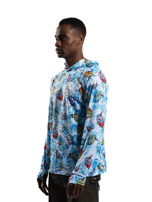 Zero Kapüşonlu Uzun Kollu UV Korumalı Performans T-shirt - Fish Eye