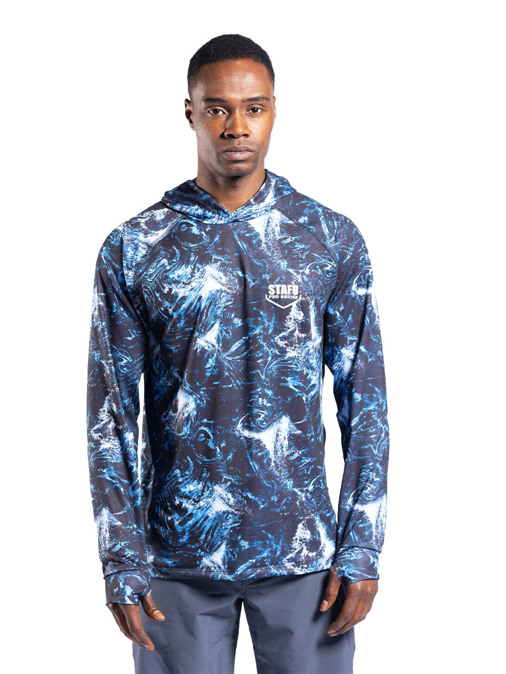 Stratos Kapüşonlu ve Maskeli UPF 40+ Performans T-Shirt - Paleo Mavi