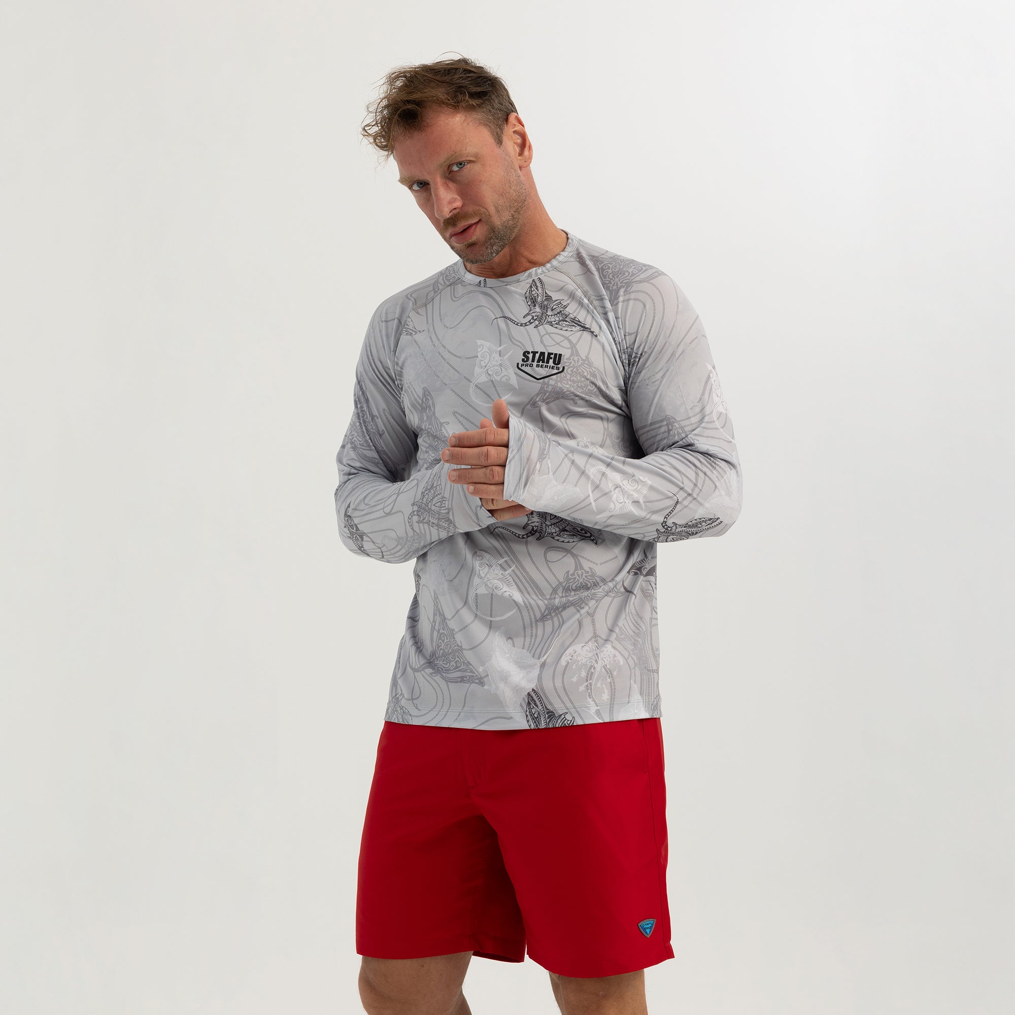 Stratos Kapüşonlu ve Maskeli UPF 40+ Performans T-Shirt - Marlin Mania Grİ